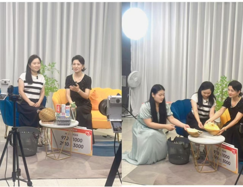 營銷官魏杰從商之都的發(fā)展歷程、企業(yè)理念娓娓道來,逐步深入到品牌核心價值,同時也重點推薦了商之都推出的大額消費券,優(yōu)惠力度誠意滿滿。在談到紅府超市時,魏杰也如數(shù)家珍,將每款產(chǎn)品的特色亮點生動呈現(xiàn)。最令人眼前一亮的當(dāng)屬現(xiàn)場剝榴蓮環(huán)節(jié),魏杰手法嫻熟,將金黃軟糯的果肉展示給屏幕前的觀眾,還不忘分享挑選優(yōu)質(zhì)榴蓮的小竅門,瞬間拉近了與消費者的距離。