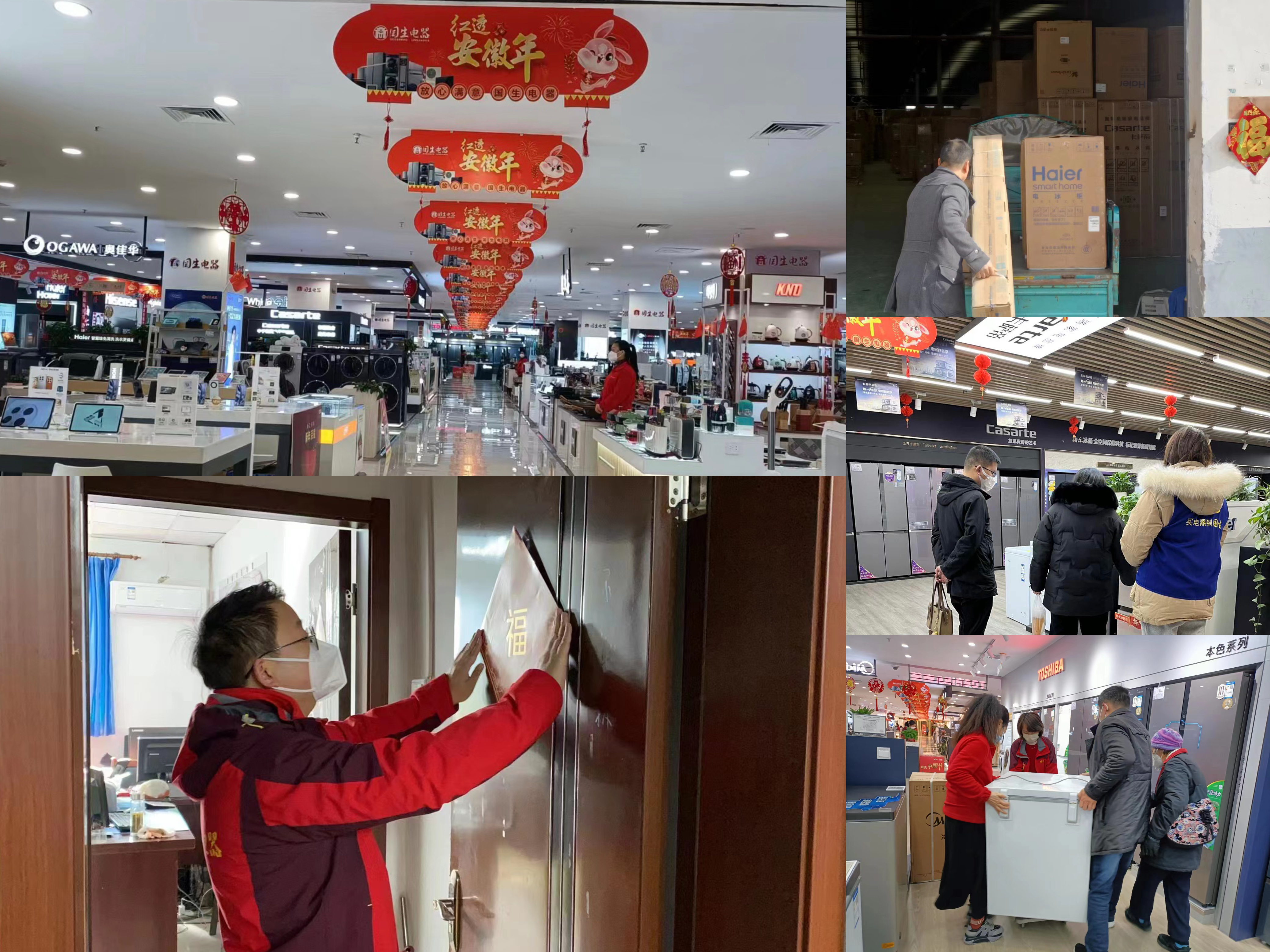 大年三十,國(guó)生電器各門店張燈結(jié)彩迎新春,堅(jiān)守崗位送服務(wù)