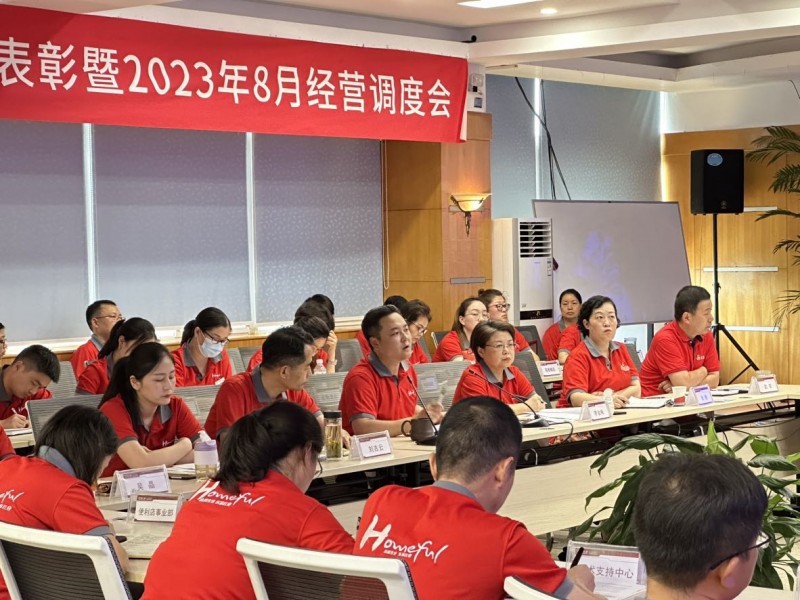 本次會(huì)議是超電融合后的首次經(jīng)營(yíng)調(diào)度會(huì),共進(jìn)行了四項(xiàng)議程:一是表彰2022年度8個(gè)先進(jìn)集體、73名先進(jìn)個(gè)人,大力營(yíng)造真抓實(shí)干、奮發(fā)向上的濃厚氛圍;二是通報(bào)公司1-7月份經(jīng)營(yíng)情況,進(jìn)行下一步工作提示;三是商流計(jì)劃完成經(jīng)驗(yàn)分享和表態(tài)發(fā)言,并由董事長(zhǎng)任等平對(duì)各單位匯報(bào)一一點(diǎn)評(píng)和指導(dǎo);四是公司領(lǐng)導(dǎo)總結(jié)部署發(fā)言??偨?jīng)理李金梅分享了行業(yè)資訊,在肯定了公司1-7月經(jīng)營(yíng)業(yè)績(jī)的同時(shí),表示下半年的營(yíng)收缺口較大,鼓勵(lì)大家堅(jiān)定信心,努力完成利潤(rùn)指標(biāo)。她對(duì)下半年的工作進(jìn)行了十點(diǎn)工作部署:一是要加快機(jī)構(gòu)改革,真正做到超電深度融合;二是提升單店經(jīng)營(yíng)水平,改進(jìn)管理質(zhì)量,加強(qiáng)責(zé)任心,提升對(duì)外形象和服務(wù);三是開展兩場(chǎng)主題營(yíng)銷活動(dòng),大力做好家電909和紅動(dòng)全城紙品宣傳活動(dòng);四是做好開閉店工作,做好項(xiàng)目移交工作、人員幫扶;五是做好門店調(diào)改工作;六是結(jié)合大干100天做好旺季銷售,圍繞營(yíng)收核心指標(biāo),對(duì)團(tuán)購(gòu)、收費(fèi)、收入、節(jié)支等方面層層細(xì)化,提質(zhì)增效;七是跟進(jìn)公司年度重點(diǎn)工作,制定時(shí)間節(jié)點(diǎn)計(jì)劃,按計(jì)劃推進(jìn)工作進(jìn)程,確保年底完成目標(biāo)任務(wù);八是做好審計(jì)、審查整改工作,問題及時(shí)響應(yīng),負(fù)責(zé)整改到位;九是八月組織召開主題生活會(huì);十是關(guān)注安全問題,加強(qiáng)包括食品安全、消防安全、安全生產(chǎn)等方面的檢查能力,門店要注意用電安全,全面排查易燃易爆商品,做好安全防范,規(guī)避侵權(quán)行為,將安全工作落到實(shí)處。
