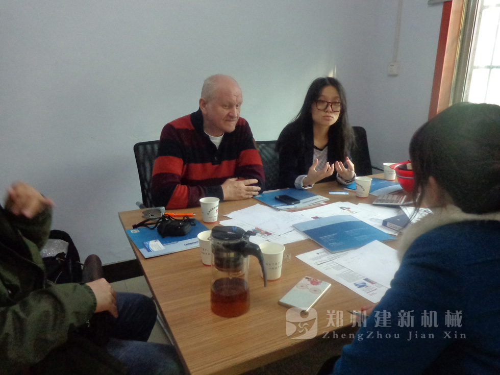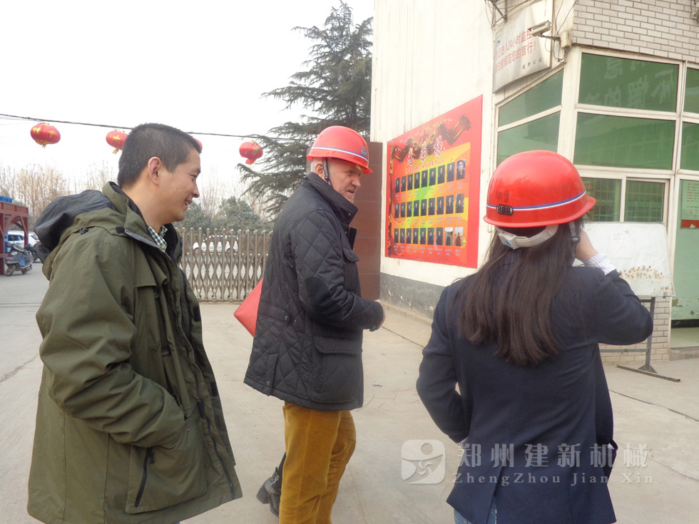 2014年11月,來自俄羅斯的客戶來到鄭州建新公司簽訂了兩套時(shí)產(chǎn)120方混凝土攪拌站設(shè)備的大訂單,下圖為建新公司銷售部劉經(jīng)理、經(jīng)理帶客戶參觀建新公司的生產(chǎn)車間及成品貨場(chǎng)。