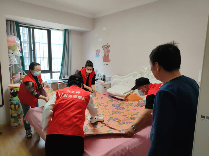 活動前,志愿者們根據(jù)睦鄰計劃服務(wù)登記表的預(yù)約需求,針對老年群體特點定制服務(wù)清單。服務(wù)過程中,商廈“V服務(wù)”志愿隊員統(tǒng)一著裝,佩戴手套、一次性鞋套,攜帶專業(yè)服務(wù)工具,分組前往住戶家中。針對服務(wù)對象的具體需求,志愿者們提供了床品除螨、物品收納等貼心服務(wù)。大家分工協(xié)作、高效行動,為住戶營造了干凈、整潔、舒適的生活環(huán)境,贏得了居民的一致好評。