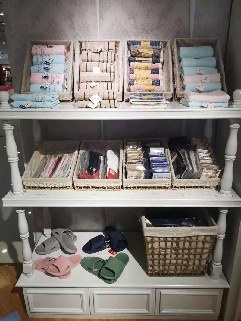 為擴(kuò)大自有品牌“優(yōu)逸空間”的經(jīng)營品類,商管公司品牌管理部與紅府超市自采部對接,雙方就合作品牌、經(jīng)營模式、協(xié)議條款等進(jìn)行了洽談,并多次到紅府宿州路店現(xiàn)場進(jìn)行比較、選品,確定引進(jìn)紅府超市自采“紅之品”、“金號”等品牌的拖鞋、毛巾等家居類商品到“優(yōu)逸空間”專柜銷售。為了節(jié)約經(jīng)營成本,品牌管理部從網(wǎng)上挑選了美觀實(shí)用的陳列道具,經(jīng)過精心設(shè)計(jì),已于近日在中心廣場、六安和霍邱三個(gè)門店“優(yōu)逸空間”專柜上柜銷售。