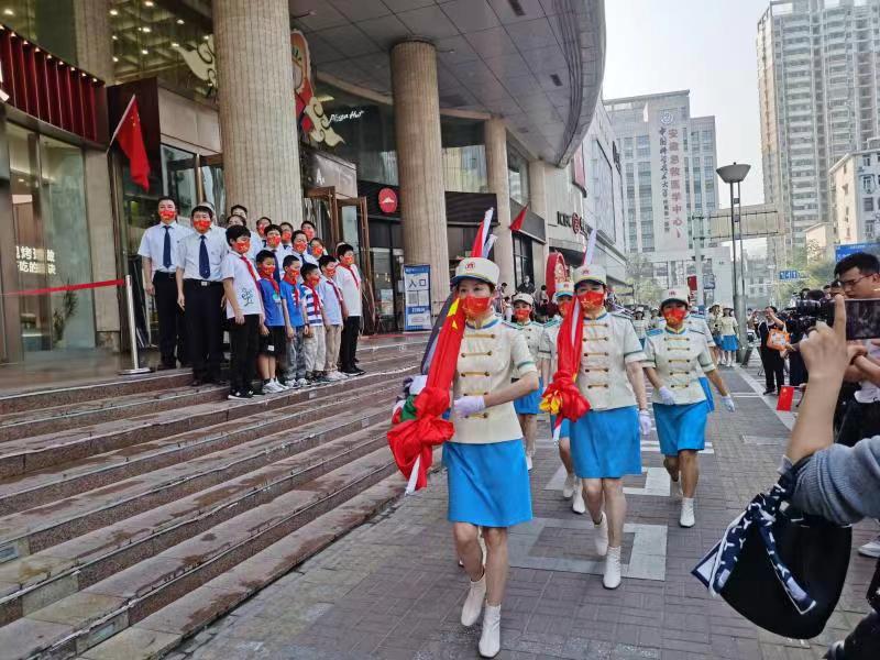 10月1日國慶當(dāng)天,商之都合肥中心廣場門前十分熱鬧。紅旗招展、人聲鼎沸,前來觀看升旗的市民擠滿了臺階,人們翹首以盼等待著儀式的開始。隨著管弦樂聲響起,英姿颯爽的商之都旗手踏著鏗鏘有力的步伐迎面走來,每一步都踏出了商之都人的堅(jiān)持。9800多個(gè)清晨,無論嚴(yán)寒酷暑,還是風(fēng)雨交加,商之都的升旗儀式從來不會中斷,這一堅(jiān)持就是27年。商之都的升旗,早已成為家喻戶曉的風(fēng)景。這種堅(jiān)持同時(shí)也展現(xiàn)出企業(yè)“不忘初心,砥礪前行”的使命和決心。