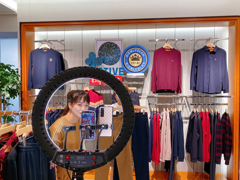 比音勒芬專柜導(dǎo)購員正在現(xiàn)場開展視頻直播售貨,線上線下銷售一起抓。直播視頻點贊達(dá)1.2萬人次。