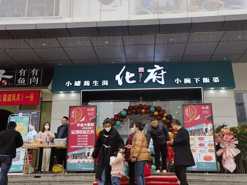 開業(yè)期間“化府”推出了全場(chǎng)菜品5-9折的優(yōu)惠活動(dòng),吸引了眾多顧客進(jìn)店品嘗。一時(shí)間店內(nèi)人流如織、熙熙攘攘,把百余平米的店鋪擠得滿滿當(dāng)當(dāng),一派紅紅火火的熱鬧場(chǎng)面?!盎弊鳛橹行膹V場(chǎng)2023年首開店鋪,迎來了中心廣場(chǎng)2023年“開門紅”!
