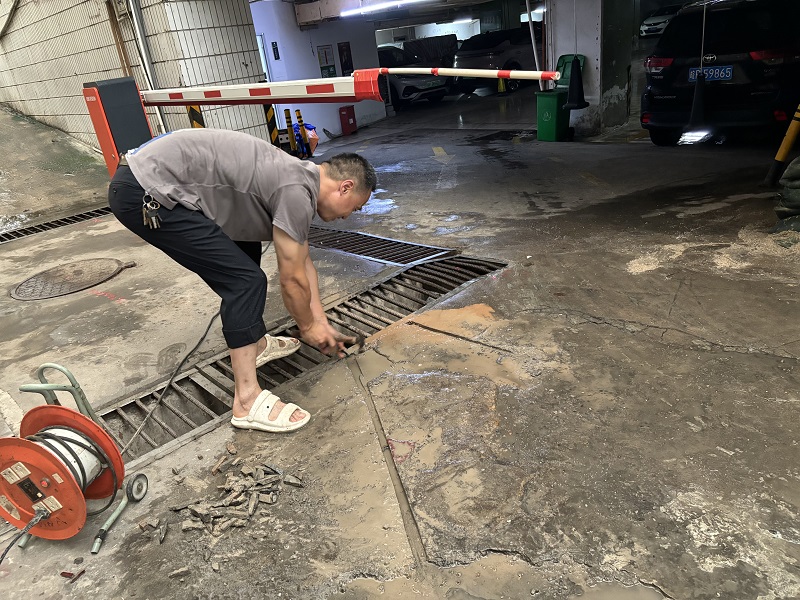 雨季來臨,為了確保汛期排水暢通,防止發(fā)生內(nèi)澇,宣城商廈后勤保障部員工耿興虎對商廈地下車庫排水溝進行仔細排查,地下車庫排水溝由于長時間未清理,溝內(nèi)碎石、淤泥堵塞,導(dǎo)致排水不便,加上突發(fā)性強降雨,造成地下車庫路面積水較多。