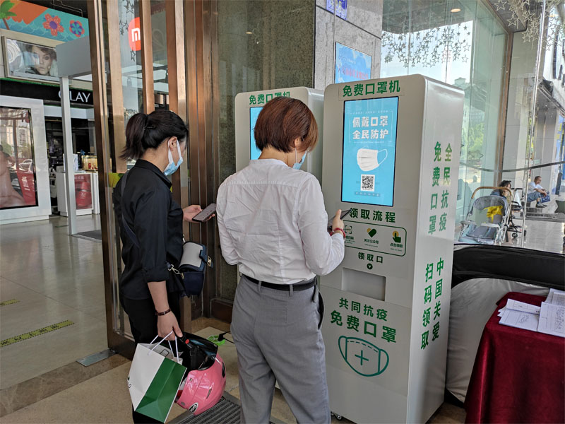 近日,六安商廈與相關方聯(lián)系,在正大門入口處安裝了2臺免費口罩發(fā)放機,方便顧客使用。
