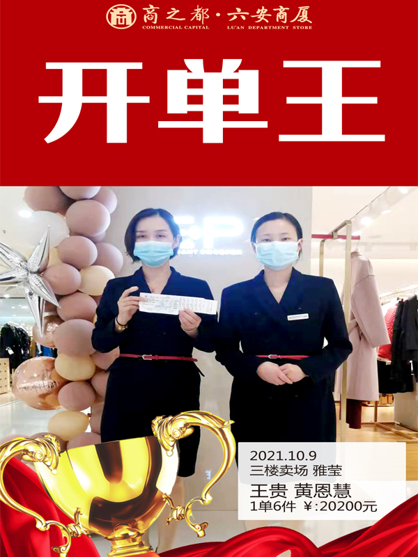 10月9日一早,伴隨著收銀機(jī)滋滋的收款聲,六安商廈三樓賣場收到來自雅瑩專柜銷售的20200元六連單,這是由雅瑩專柜員工王貴邀約顧客周女士到店,王貴和黃恩慧共同服務(wù)成交的一筆六連單。