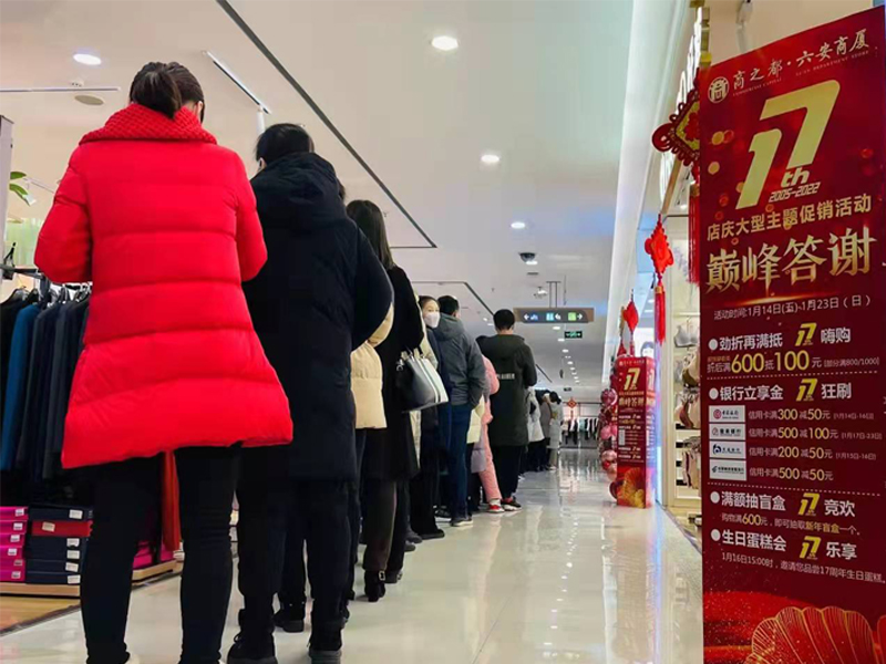 1月23日晚,六安商廈持續(xù)10天的17周年慶“巔峰答謝”主題活動落幕,銷售同比2021年增長38%,創(chuàng)下了2017年以來店慶活動銷售新高。