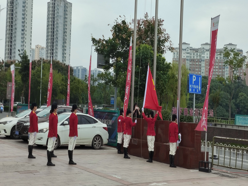 10月1日兩場(chǎng)活動(dòng)吸引眾多市民參與,清晨,不少市民攜老帶幼匯聚商場(chǎng)廣場(chǎng),共同見證升旗儀式,雄壯國(guó)歌聲中,五星紅旗緩緩升起,大家手持國(guó)旗肅立行注目禮,齊唱國(guó)歌,現(xiàn)場(chǎng)莊重而熱烈。當(dāng)日下午,商廈聯(lián)合紅黃藍(lán)書畫苑組織30名孩子開展“百米長(zhǎng)卷 童繪中國(guó)”活動(dòng),孩子們以畫筆勾勒祖國(guó)壯麗山河,書法對(duì)祖國(guó)的熱愛與祝福。