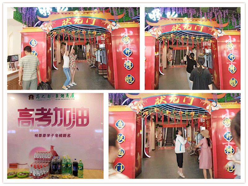 本次巢湖商廈繼續(xù)在商廈內(nèi)建立了高/中考服務(wù)站,為高考學(xué)生和家長(zhǎng)提供飲用水、防暑藥等消暑用具?,F(xiàn)場(chǎng)搭建的狀元門(mén)吸引了不少考生們前來(lái)“沾喜氣”。