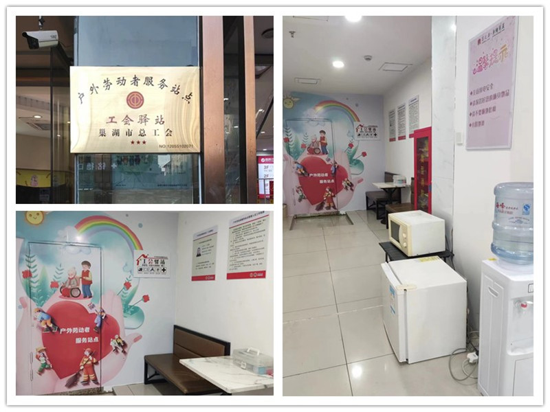 日前,巢湖商廈“工會(huì)驛站”設(shè)立。驛站內(nèi)配備飲水機(jī)、小冰箱、微波爐、桌椅、醫(yī)藥箱等設(shè)備,為從事戶外工作勞動(dòng)者提供生活上的方便和關(guān)愛。