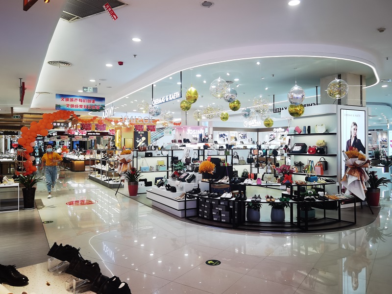 全新升級(jí)后的鞋類箱包區(qū)更具現(xiàn)代感,設(shè)計(jì)簡(jiǎn)潔明快,富有變化的弧形動(dòng)線、同時(shí)配合吊楣燈光的重新設(shè)計(jì),增強(qiáng)了專柜間的通透感及整個(gè)賣場(chǎng)的時(shí)尚感,為消費(fèi)者帶來全新舒適的環(huán)境體驗(yàn)。