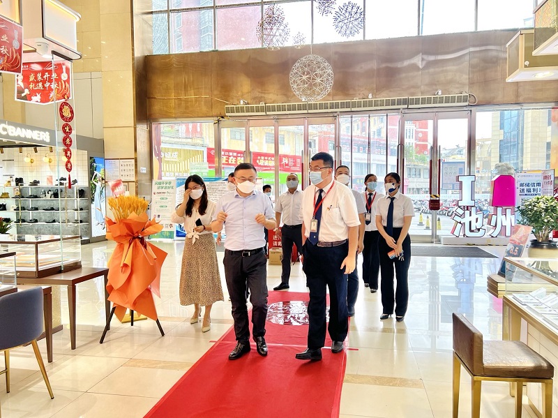 潘友華一行深入池州購物中心營業(yè)現(xiàn)場,了解安全生產(chǎn)、節(jié)日促銷、疫情防控及運營管理等各項工作開展情況。