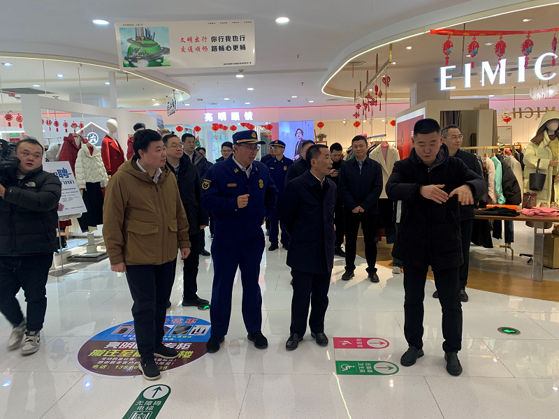 2月8日上午,池州市市委副書記、市長(zhǎng)賀東帶隊(duì)到池州購(gòu)物中心督導(dǎo)檢查春節(jié)前消防安全工作,市政府秘書長(zhǎng)崩興宇,市商務(wù)局、市市場(chǎng)監(jiān)管局、市消防救援支隊(duì)及貴池區(qū)政府等相關(guān)同志陪同。