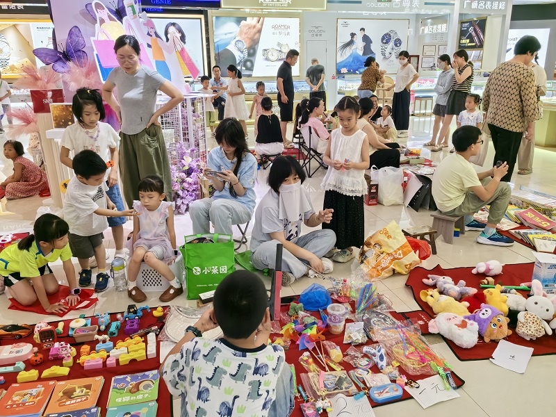 7月19日晚,池州購(gòu)物中心一樓小中庭化身為充滿(mǎn)童趣與環(huán)保理念的“小小創(chuàng)業(yè)天地”。一場(chǎng)別開(kāi)生面的親子集市在這里熱鬧開(kāi)市,十幾個(gè)家庭的小攤主們帶著精心準(zhǔn)備的閑置玩具、書(shū)籍、文具等“舊寶貝”,開(kāi)啟了一場(chǎng)以物換物、愛(ài)心義賣(mài)的有趣社會(huì)實(shí)踐。