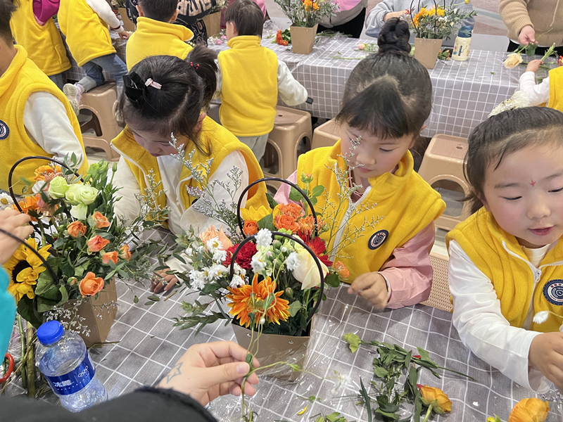 一枝花,一枝葉,看著通過自己雙手制作成的插花作品,每個人的臉上都洋溢著喜悅的笑容,收獲滿滿的喜悅。活動的最后,小朋友們紛紛把插好的鮮花送給自己的媽媽。