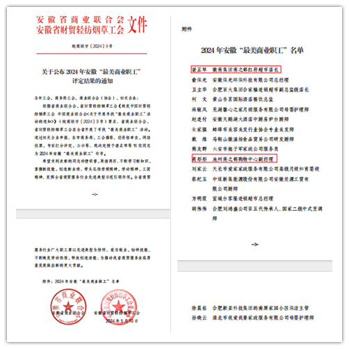 近日,安徽省商業(yè)聯(lián)合會、安徽省財貿(mào)輕紡煙草工會公布了2024年安徽“最美商業(yè)職工”評定結果,紅府超市諶正琴、池州購物中心肖彤彤榜上有名。