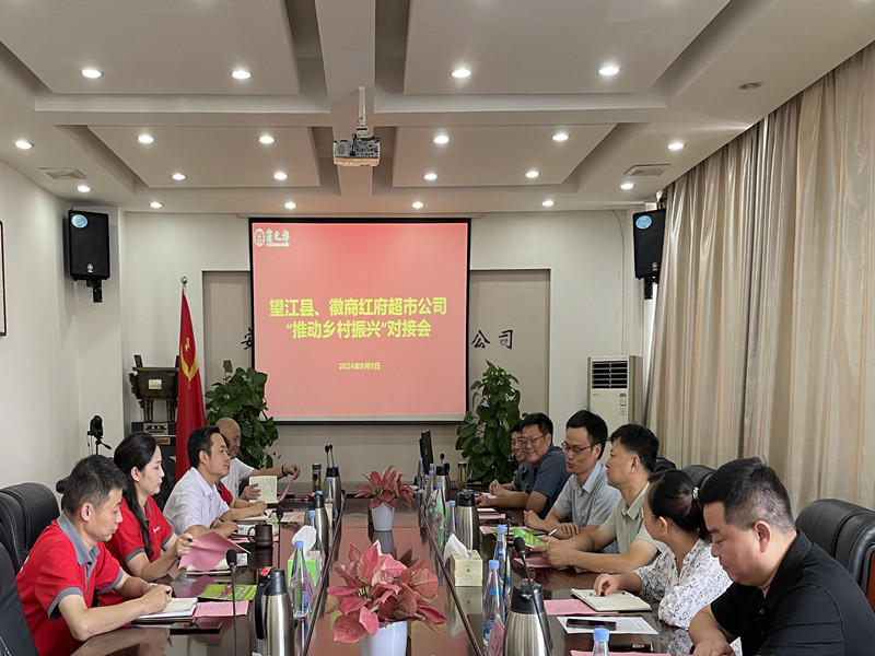 8月8日上午,紅府超市與望江縣人民政府在公司召開“推動(dòng)鄉(xiāng)村振興”對(duì)接會(huì)。望江縣人民政府副縣長石德犇一行來訪,商之都副總經(jīng)理、紅府超市董事長任等平等相關(guān)人員參與洽談。