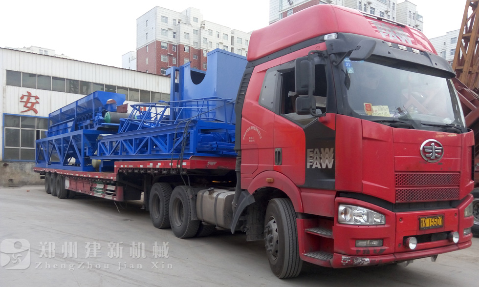 2015年6月8日,發(fā)走一批90型混凝土攪拌站之后,一套PLD1200混凝土配料機(jī)在鄭州建新機(jī)械裝車,即將發(fā)往周口市太康縣。
