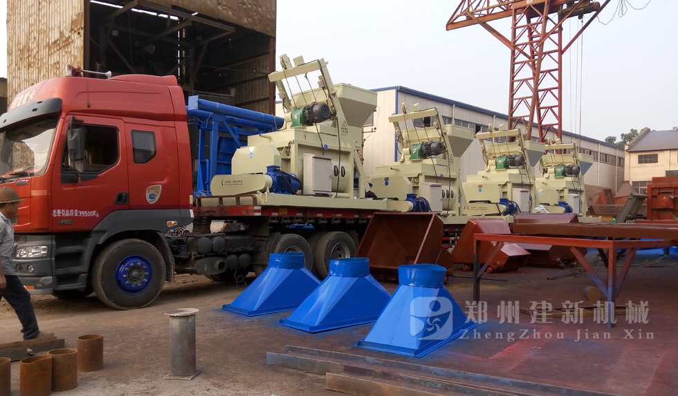 2015年7月11日下午,4臺(tái)JS1000強(qiáng)制式混凝土攪拌機(jī)在鄭州建新機(jī)械裝車,運(yùn)往遼寧。