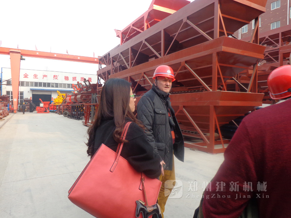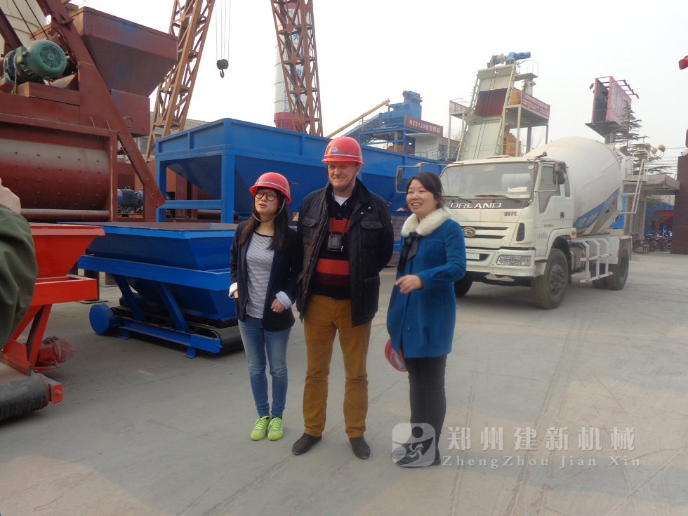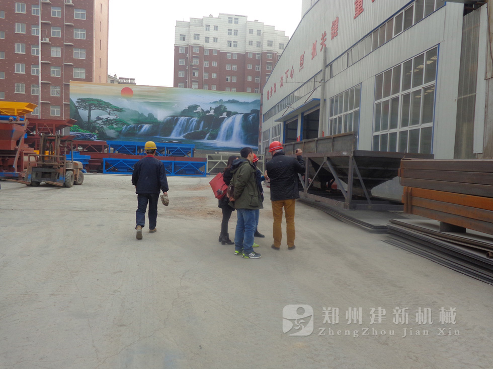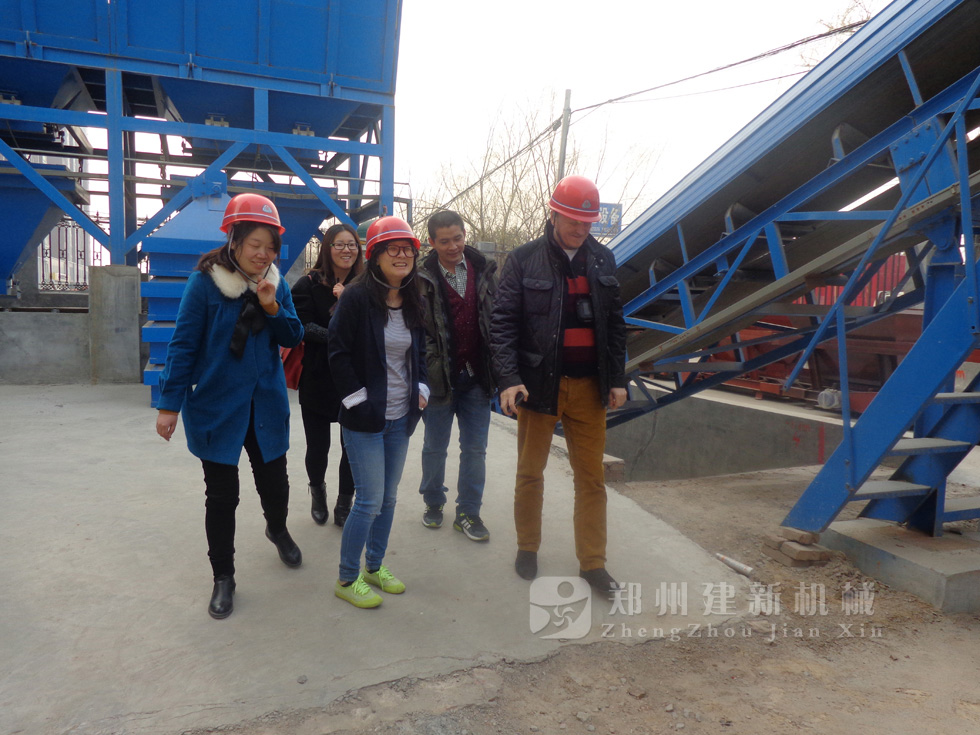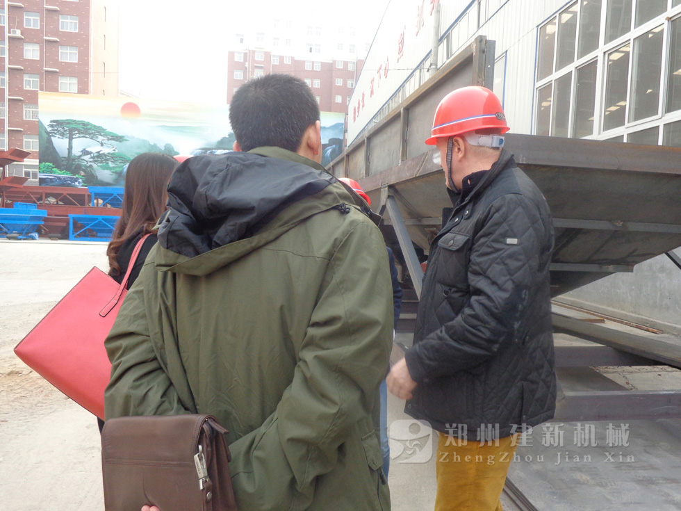 2014年11月,來自俄羅斯的客戶來到鄭州建新公司簽訂了兩套時(shí)產(chǎn)120方混凝土攪拌站設(shè)備的大訂單,下圖為建新公司銷售部劉經(jīng)理、經(jīng)理帶客戶參觀建新公司的生產(chǎn)車間及成品貨場(chǎng)。
