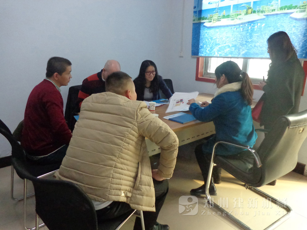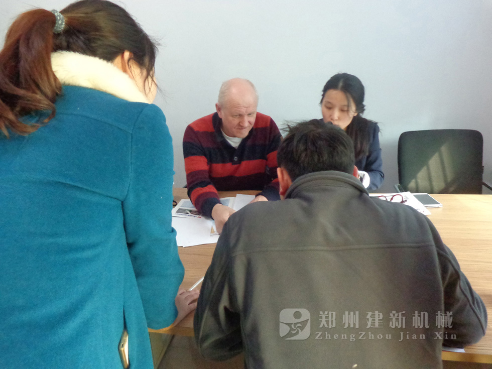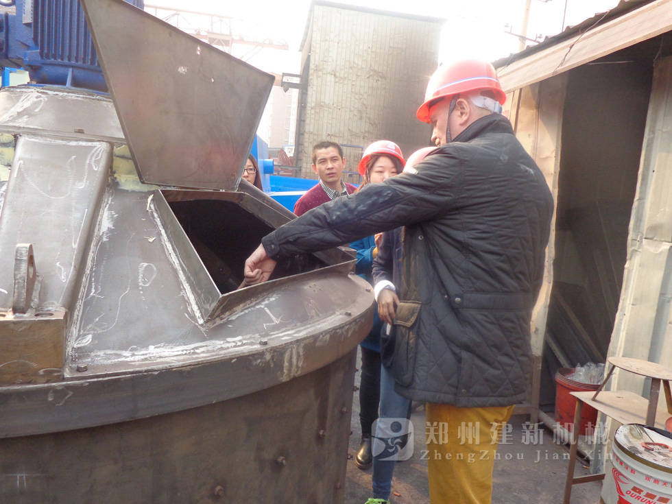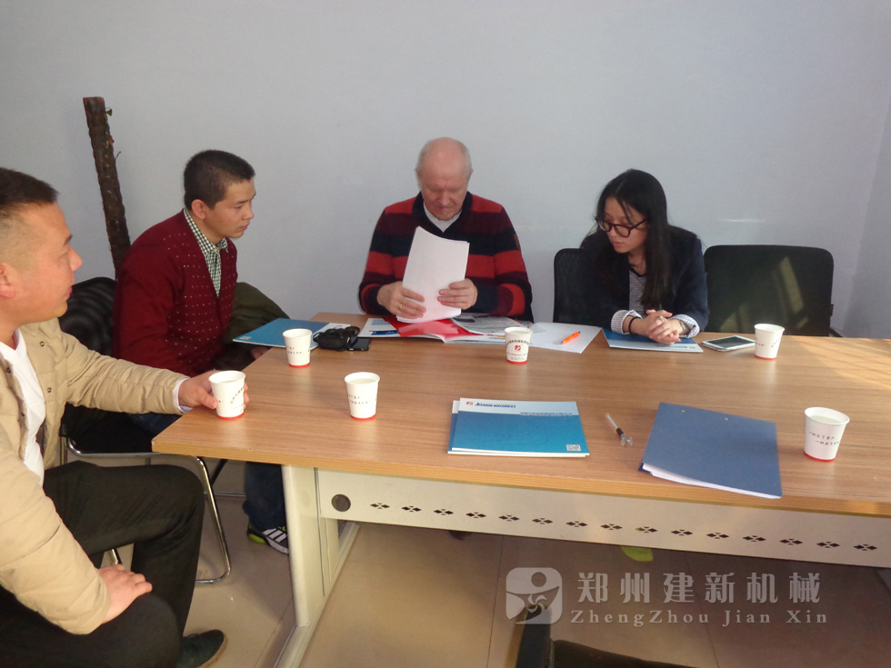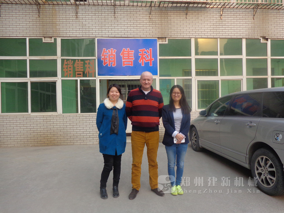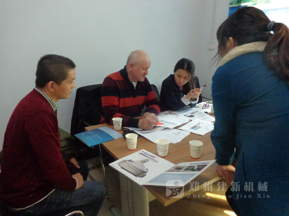 2014年11月,來自俄羅斯的客戶來到鄭州建新公司簽訂了兩套時(shí)產(chǎn)120方混凝土攪拌站設(shè)備的大訂單,下圖為建新公司銷售部劉經(jīng)理、經(jīng)理帶客戶參觀建新公司的生產(chǎn)車間及成品貨場(chǎng)。
