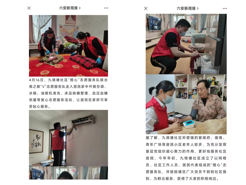 此次活動(dòng)是六安商廈“V服務(wù)”黨建品牌中睦鄰計(jì)劃的落地實(shí)施,六安商廈黨支部聯(lián)合九墩塘社區(qū)黨總支走入社區(qū)居民家中開(kāi)展空調(diào)、冰箱、油煙機(jī)清洗、床品除螨整理、血壓血糖測(cè)量等愛(ài)心志愿服務(wù)活動(dòng),讓居民在家即可享受貼心服務(wù)。