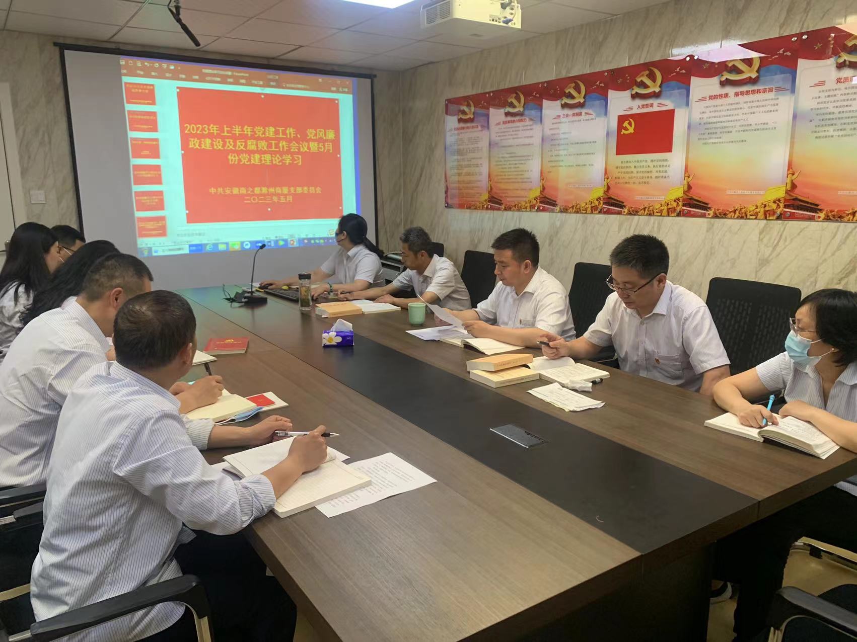 5月29日上午,滁州商廈黨支部在六樓黨員活動室召開2023年上半年黨建工作、黨風(fēng)廉政建設(shè)及反腐敗工作會議暨5月份黨建理論學(xué)習(xí)。公司全體黨員、發(fā)展對象、入黨積極分子,各部門負責(zé)人參加會議,黨支部書記朱文濤主持會議。