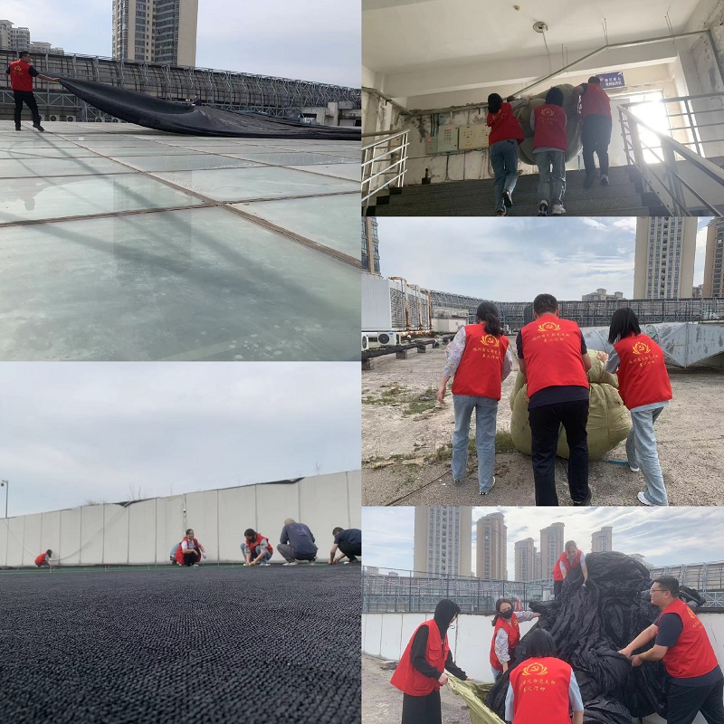 5月9日下午,池州購物中心黨支部開展“我為群眾辦實事”活動,為購物中心頂樓屋面鋪設防曬網,為顧客和員工提供一個舒適涼爽的購物、工作環(huán)境,購物中心黨員、入黨積極分子參加活動。