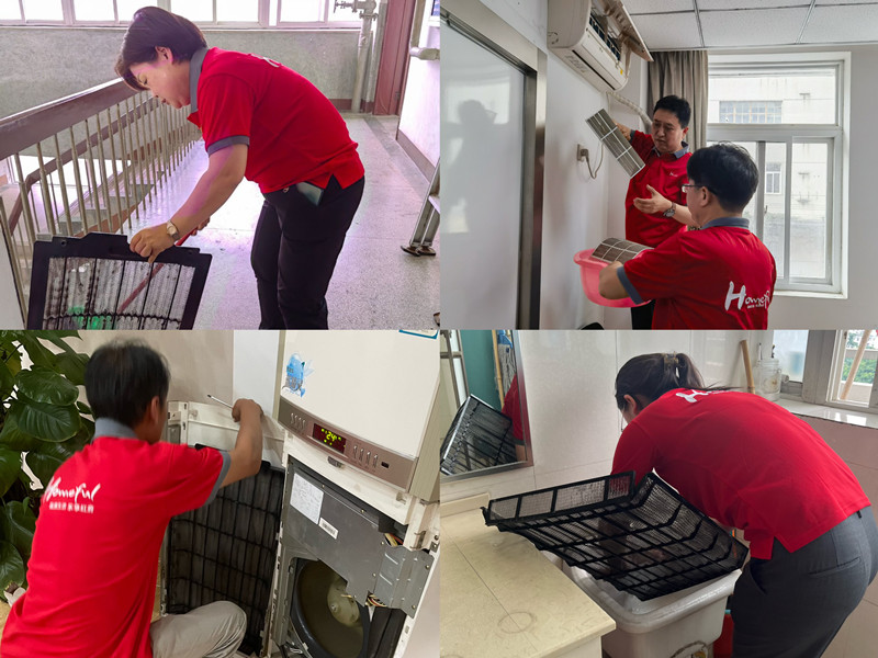 支部全體黨員分成4個小組,每個小組由一個支委委員帶隊,統(tǒng)一安排,相互配合,給空調(diào)斷電、拆卸外殼、抽出濾網(wǎng)、清洗濾網(wǎng)、將洗凈的濾網(wǎng)安裝回空調(diào),將辦公樓八個樓層里每一間辦公室的空調(diào)進行清洗。黨員同志們不怕臟不怕累,互幫互助,暖心的服務(wù)受到了所有同事的一致好評和稱贊。