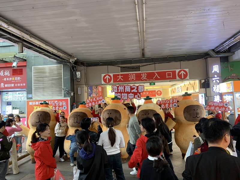 全體黨員帶著五只卡皮巴拉人偶在西街宣傳15周年慶系列活動,并引導消費者掃碼關注“池州商之都“官方抖音號?;顒游姸嘞M者圍觀,拉近了與消費者的距離,達到了吸引西街客流到池州商之都的活動目的。