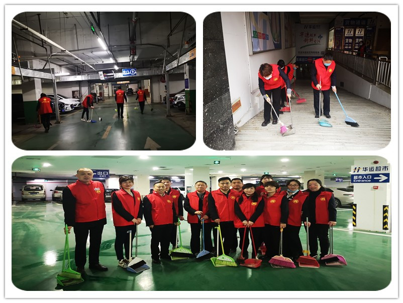 活動(dòng)開始,參加人員分為兩組對(duì)購物中心外圍廣場及負(fù)一、二層停車場進(jìn)行衛(wèi)生清潔及美化工作。大家分工協(xié)作,手拿掃把等衛(wèi)生潔具,做好商場內(nèi)外環(huán)境衛(wèi)生清掃及車輛有序停放引導(dǎo)等工作。