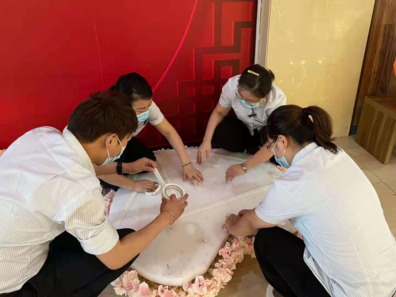為了響應(yīng)公司降本增效的號(hào)召,客戶營(yíng)銷部充分調(diào)動(dòng)部門員工積極性,利用各自的特長(zhǎng),嘗試自己動(dòng)手創(chuàng)作搭建。大家同力協(xié)契共同構(gòu)思,將傳統(tǒng)的“七夕”鵲橋文化與現(xiàn)代的“網(wǎng)紅花束”相融合,打造七夕“驚喜”。制作“網(wǎng)紅墻”制作所需材料均是在網(wǎng)上多家比價(jià)精心選購(gòu)?,F(xiàn)場(chǎng)組合安裝也是自己動(dòng)手,難題不斷——在大理石墻面不能掛釘固定花環(huán)的情況下,為了保證安全地將花環(huán)固定在墻面上,大家想了很多辦法:雙面膠、無(wú)痕釘、玻璃膠......經(jīng)過(guò)一整天的努力,終于將花環(huán)固定在所需位置,解決了安全問題的同時(shí),又保證了顧客拍照的最佳效果。