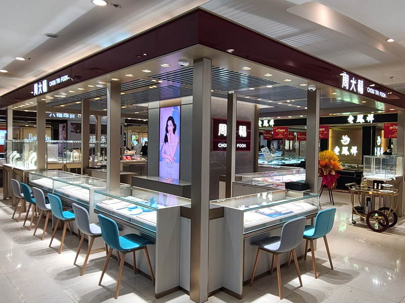 升級(jí)改造后的周大福專柜面積從原來的50余平方,擴(kuò)大到80余平方,從貨品陳列、貨柜組合、體驗(yàn)氛圍等多方面進(jìn)行了整體升級(jí),將原來移動(dòng)的“云柜臺(tái)”固定到柜臺(tái)內(nèi),從而使得專柜更加寬敞明亮,其新的設(shè)計(jì)風(fēng)格可以迎合不同年齡段的顧客。新柜開柜首日銷售額同比上升253%。