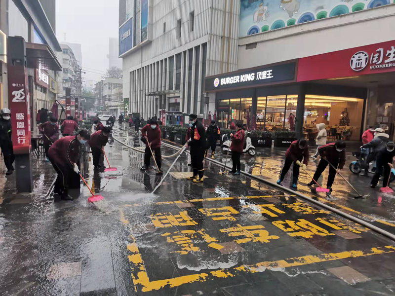 瑟瑟寒風(fēng)中,物業(yè)保潔人員正在清洗地面,有的用水沖,有的用刷子刷,互相配合。26周年慶前,中心廣場(chǎng)對(duì)周邊環(huán)境進(jìn)行了一次全面檢查和清理,以干凈整潔的環(huán)境迎接26周年慶。(文/圖 劉光能)