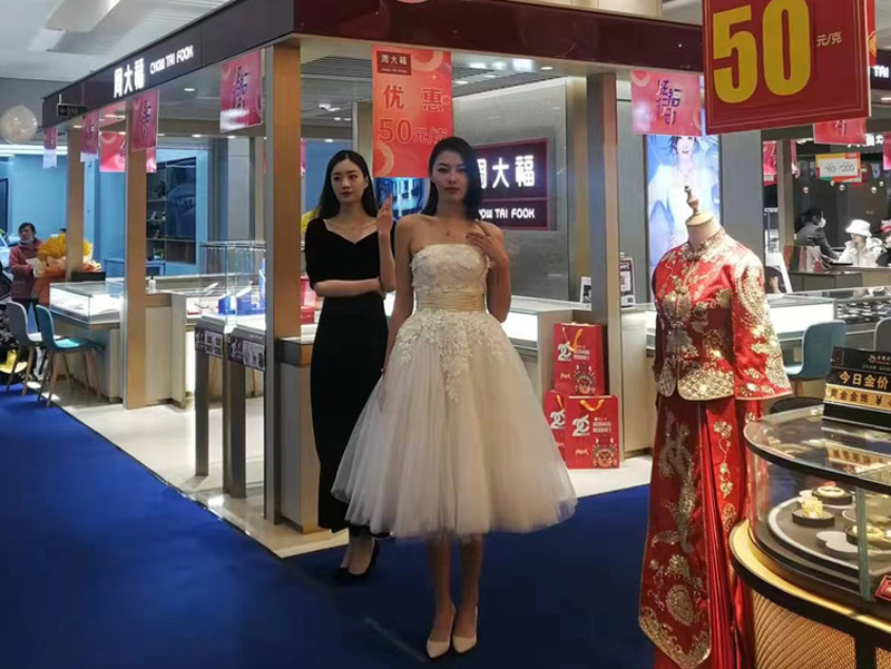 “璀璨珠寶節(jié)”促銷活動形式豐富多彩,有實付金額5萬元送羊毛被、2萬元送大米一袋、1萬元送毛巾禮盒,更有黃金最高克減60元,鑲嵌類滿仟減佰等活動,其中26日的模特走秀活動將活動推上高潮?;顒友埬L剡M行珠寶商品走秀展示,同時進行了有獎問答環(huán)節(jié),顧客收獲多多,現(xiàn)場人氣滿滿。活動獲得顧客的一致好評。