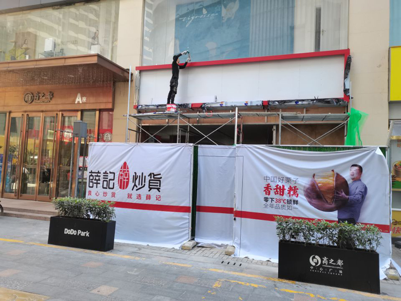 隨著“薛記炒貨”圍擋的搭建完成和工作人員的進(jìn)場施工,標(biāo)志著中心廣場成功沖破疫情阻礙,引進(jìn)新品招商成果初顯見效。