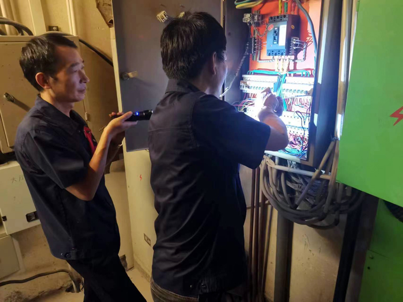 物業(yè)工程部維修工宋德耀在班長王正紀(jì)的帶領(lǐng)下對A座二樓1號電管井內(nèi)照明配電柜進(jìn)行檢查,確保商場照明供電運行正常,為國慶期間商場正常經(jīng)營保駕護(hù)航。