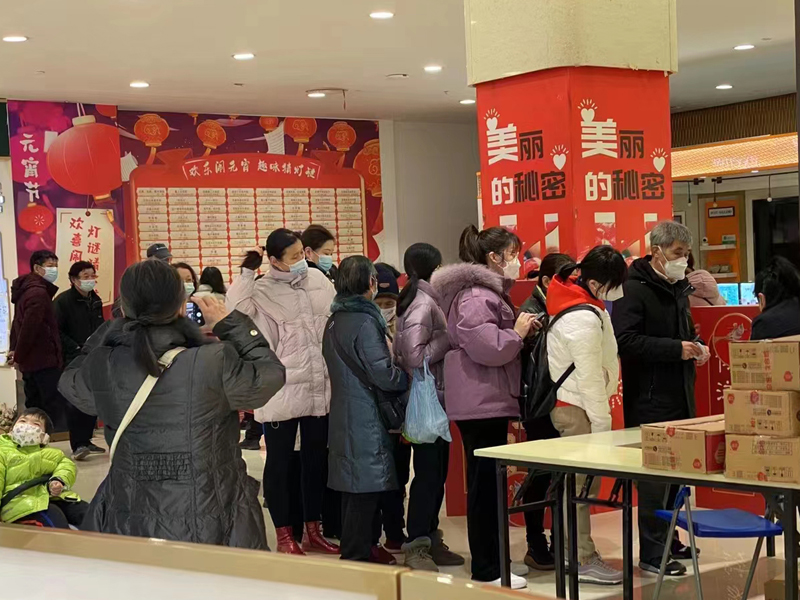 活動(dòng)現(xiàn)場(chǎng)制作燈謎墻,張貼百條燈謎,禧樂(lè)猜燈謎,一起贏團(tuán)圓(競(jìng)猜正確可獲得湯圓一袋),盡享年味滿盈。此次活動(dòng)在延續(xù)春節(jié)喜慶氛圍的同時(shí),更注重提升傳統(tǒng)燈謎的趣味性和知識(shí)面,吸引更多年輕顧客的融入?,F(xiàn)場(chǎng)客流不斷涌入,既有年年光臨的老朋友,也有臨時(shí)加入的新顧客?;蛐赜谐芍?,或冥思苦想,或恍然大悟,或相互探討,或已興高采烈地領(lǐng)取獎(jiǎng)品……現(xiàn)場(chǎng)元宵節(jié)氛圍感拉滿。