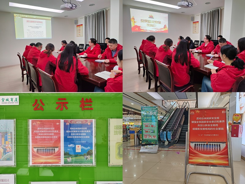 4月14日上午,宣城商廈組織員工集中學(xué)習(xí)司法部、全國(guó)普法辦《關(guān)于開(kāi)展2023年全民國(guó)家安全教育日普法宣傳活動(dòng)的通知》、省國(guó)資委相關(guān)通知以及國(guó)家安全教育相關(guān)知識(shí),收看專題宣傳視頻,強(qiáng)調(diào)了國(guó)家安全工作的重要性,要求全體員工樹(shù)立國(guó)家安全意識(shí)。商廈通過(guò)微信工作群發(fā)動(dòng)全體員工積極參與專項(xiàng)答題活動(dòng),并在微信朋友圈轉(zhuǎn)發(fā)活動(dòng)宣傳圖片,在公示欄、商場(chǎng)內(nèi)擺放活動(dòng)宣傳畫等,積極營(yíng)造“全民國(guó)家安全教育日普法宣傳”活動(dòng)氛圍。