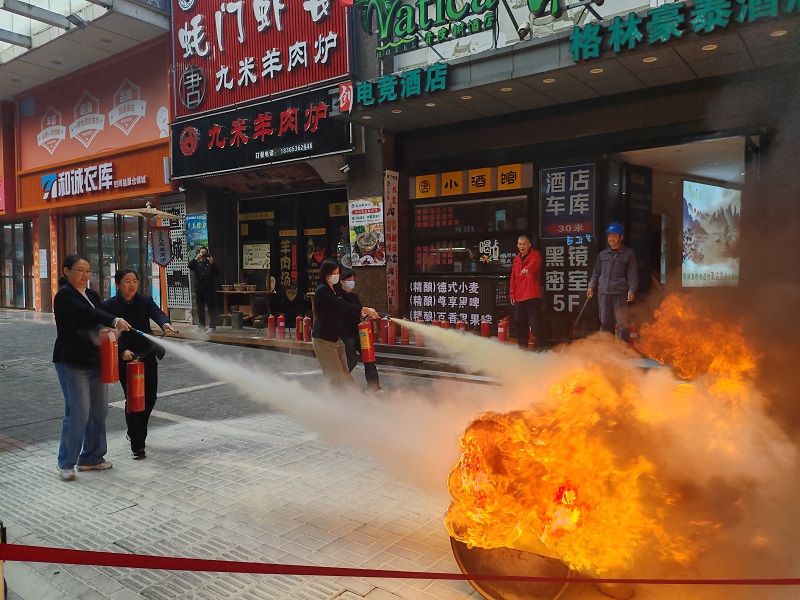 8:00時,消防監(jiān)控室模擬火情,啟動商廈消防應(yīng)急廣播,商場內(nèi)警鈴四起,各樓層員工及租賃單位人員在疏散引導(dǎo)員的引導(dǎo)下,緊張有序地安全到達室外指定位置。商廈安全管理人員先對消防知識進行了培訓(xùn),重點介紹了滅火器的使用方法和要點,隨后開展了滅火實戰(zhàn)演練,參演員工結(jié)合日常培訓(xùn)所學(xué)的安全知識沉著、冷靜、快速地撲滅了大火。