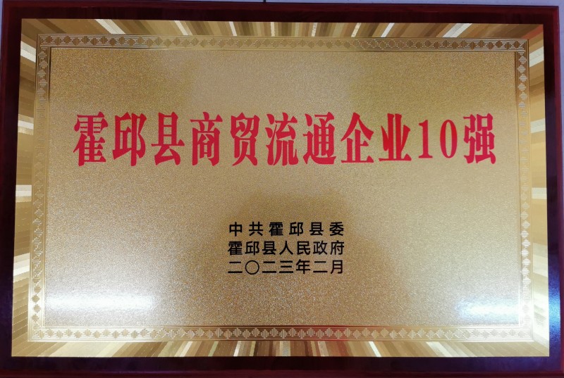 2月19日,霍邱縣委政府召開全縣“一改兩為”表彰大會,霍邱商廈榮獲“霍邱縣商貿流通企業(yè)10強”光榮稱號。