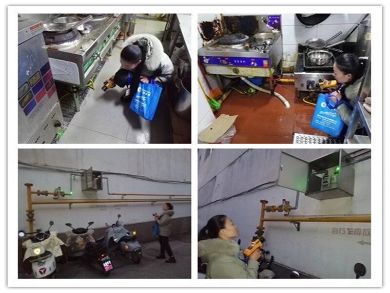檢測中,安檢員分別對燃氣管道、連接軟管、閥門、報警探頭、燃氣表等設備進行了仔細探測,并查看了設備是否存在有泄漏、銹蝕、老化等現(xiàn)象,隨后對合格設備張貼了安檢合格證。同時安檢員還向餐飲單位管理人員進行了燃氣安全知識的普及,提醒各用戶:春節(jié)將至,加強用氣安全管理,堅決遏制各類燃氣安全事故的發(fā)生。