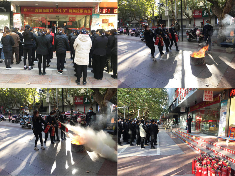 本著“落實(shí)消防責(zé)任、防范安全風(fēng)險(xiǎn)”的方針,11月9日上午,滁州商廈聯(lián)合四合路社區(qū)及志愿者開(kāi)展消防應(yīng)急疏散演練和滅火演練。