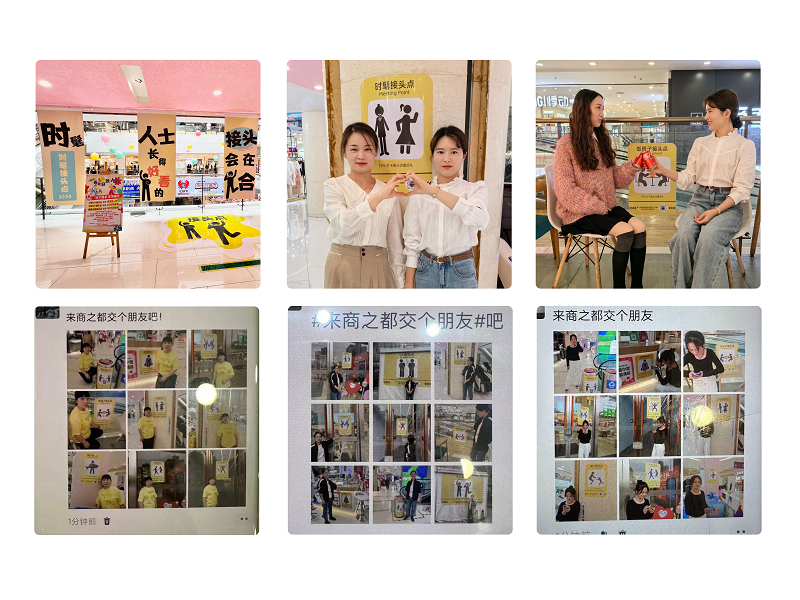 “我找到啦,快幫我拍。”一位女生已經(jīng)在二樓正大門前擺好POSS,拉著她的好友給她拍照;“喂,我在紅街大門E人接頭點(diǎn)這兒等你?!蹦贻p小伙正在和他好友打電話相約接頭點(diǎn)見面。池州購(gòu)物中心聯(lián)合鼎街餐飲內(nèi)外共設(shè)置了19個(gè)接頭點(diǎn),吸引不少顧客駐足拍照打卡分享社交媒體。