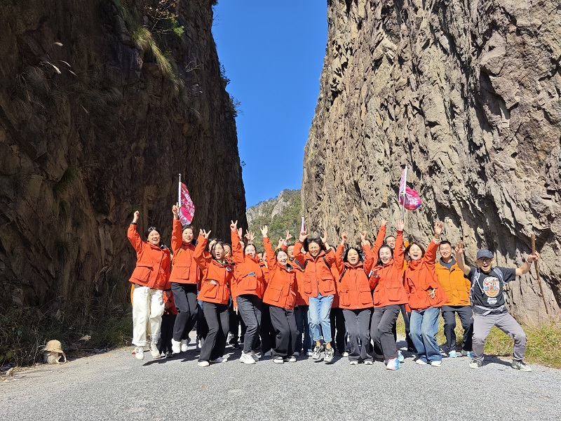 清晨,陽(yáng)光透過(guò)薄霧灑在集合地點(diǎn),員工們懷著期待與興奮的心情早早集合。大家身著統(tǒng)一的橙色沖鋒衣,精神抖擻,整裝待發(fā)。在乘坐大巴前往徒步地點(diǎn)的途中,歡聲笑語(yǔ)不斷,氣氛輕松愉悅。到達(dá)徒步地點(diǎn)青陽(yáng)縣陵陽(yáng)鎮(zhèn)九華山后山后,清新的空氣撲面而來(lái),美麗的自然風(fēng)光讓人心曠神怡。池州購(gòu)物中心張亮發(fā)表了簡(jiǎn)短而有力的開場(chǎng)致辭,強(qiáng)調(diào)了此次活動(dòng)的目的和意義,希望大家在徒步中放松身心、增進(jìn)交流、提升團(tuán)隊(duì)凝聚力。隨后,隊(duì)伍進(jìn)行了修整和熱身,為12公里的徒步做好充分準(zhǔn)備。