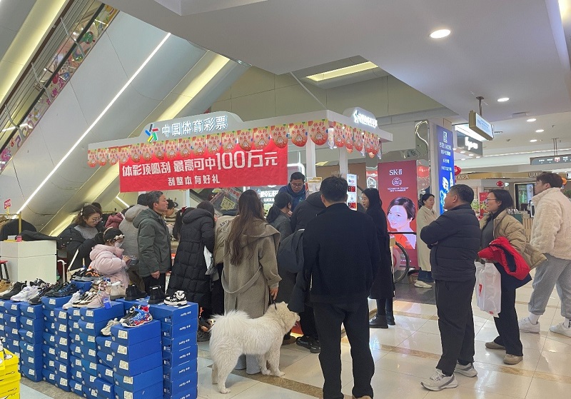 春節(jié)期間,池州購物中心里一片喜慶。體育彩票銷售點(diǎn)前,更是人頭攢動,熱鬧非凡。
