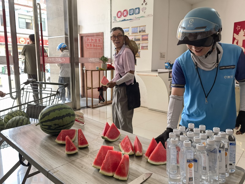 活動期間,池州購物中心為外賣小哥、環(huán)衛(wèi)工人等戶外勞動者精心準備了西瓜、礦泉水、冰袖以及清涼大禮包等防暑降溫物品。池州市總工會也大力支持,送來3000瓶礦泉水,表達了對池州商之都工會驛站持續(xù)用心服務戶外勞動者工作的充分認可。這些物資不僅緩解了戶外勞動者在高溫工作中的口渴與炎熱,更讓他們感受到了來自社會各界的尊重和關愛。